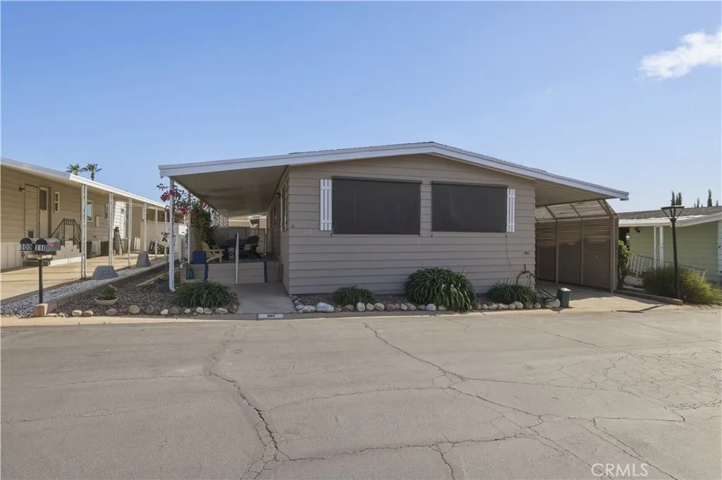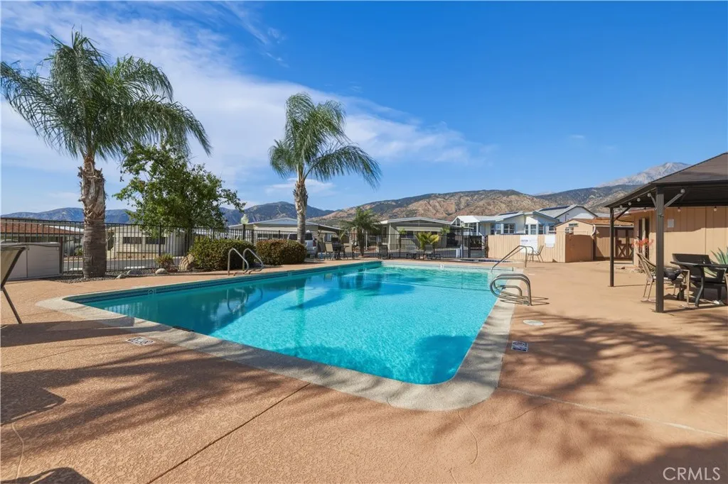 A Home with Stunning Mountain Views! Almost feels like Palm Springs! El Dorado Palms Mobile Estates is a desirable 55+ gated senior community in Yucaipa offering a peaceful, well-maintained setting and a comfortable lifestyle surrounded by everyday conveniences and local recreation. This charming 2 bedroom, 2 bathroom manufactured home features a functional and inviting floor plan designed for easy living. The primary bedroom includes its own private bathroom, creating a comfortable and relaxing retreat. Recent improvements include updated flooring and fresh interior paint and complete exterior paint, along with additional upgrades that give the home a clean, refreshed feel throughout. A dedicated laundry area adds everyday convenience, and appliances are included for a move-in ready experience. Outside, youll enjoy a private yard space along with two large custom storage sheds, ideal for extra storage and organization. El Dorado Palms offers a quiet, well-cared-for environment designed for an active yet relaxed 55+ lifestyle. Residents enjoy a clubhouse for social gatherings, a swimming pool and jacuzzi, a billiards room, and a library for reading and leisure. The community is also pet friendly and encourages connection through regular social activities and shared spaces. Ideally located in the heart of Yucaipa, the home is just minutes from shopping, dining, and everyday services, including Chapman Heights Shopping Center and nearby retail and restaurants. Outdoor recreation is close by at El Dorado Ranch Park, offering hiking trails, fishing, and equestrian paths. Oak Gl