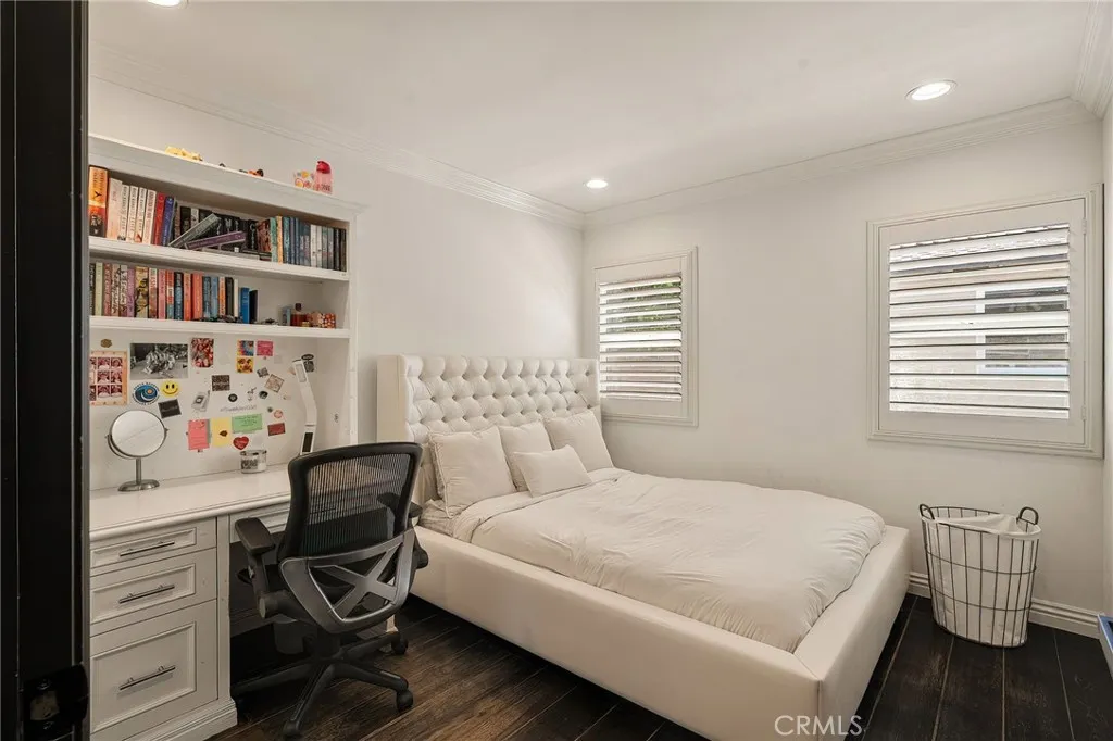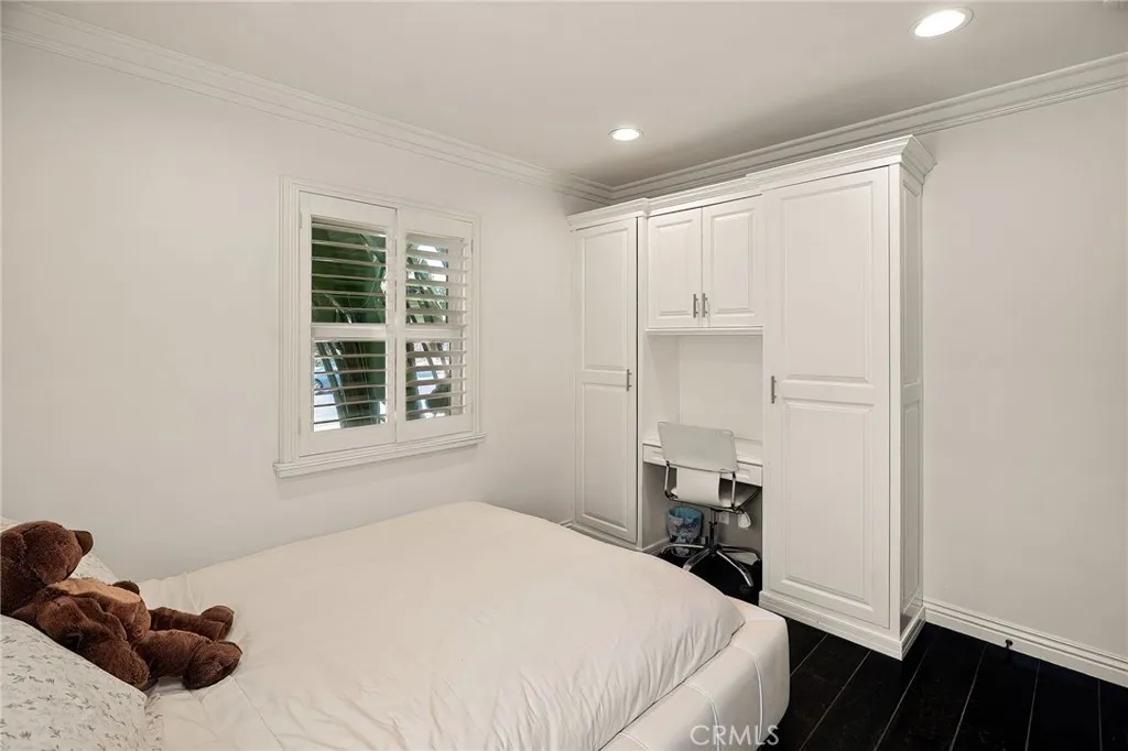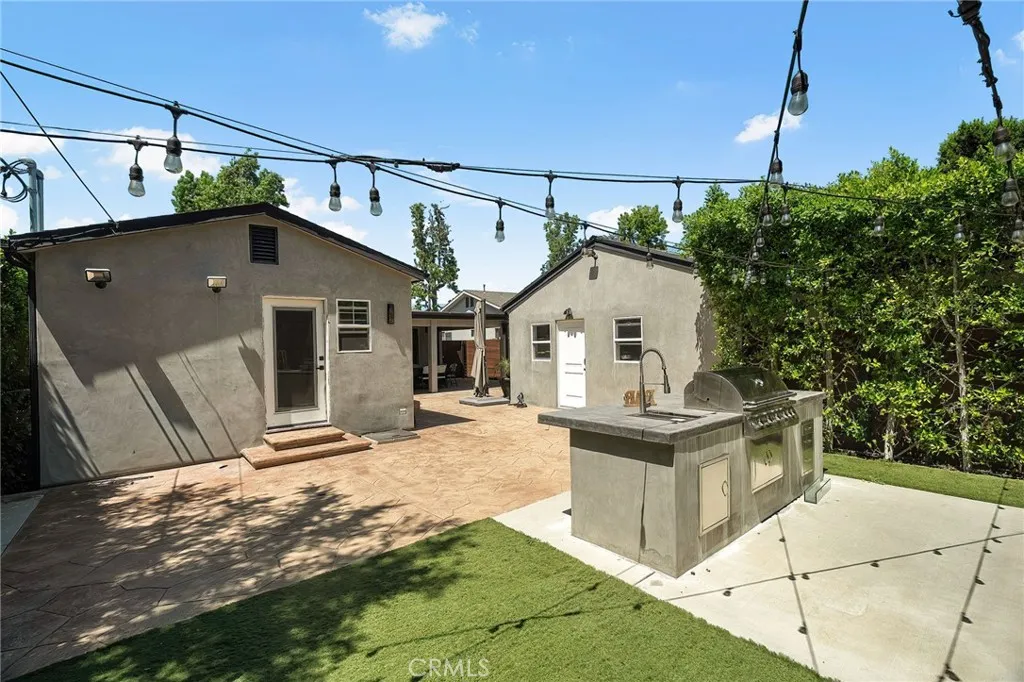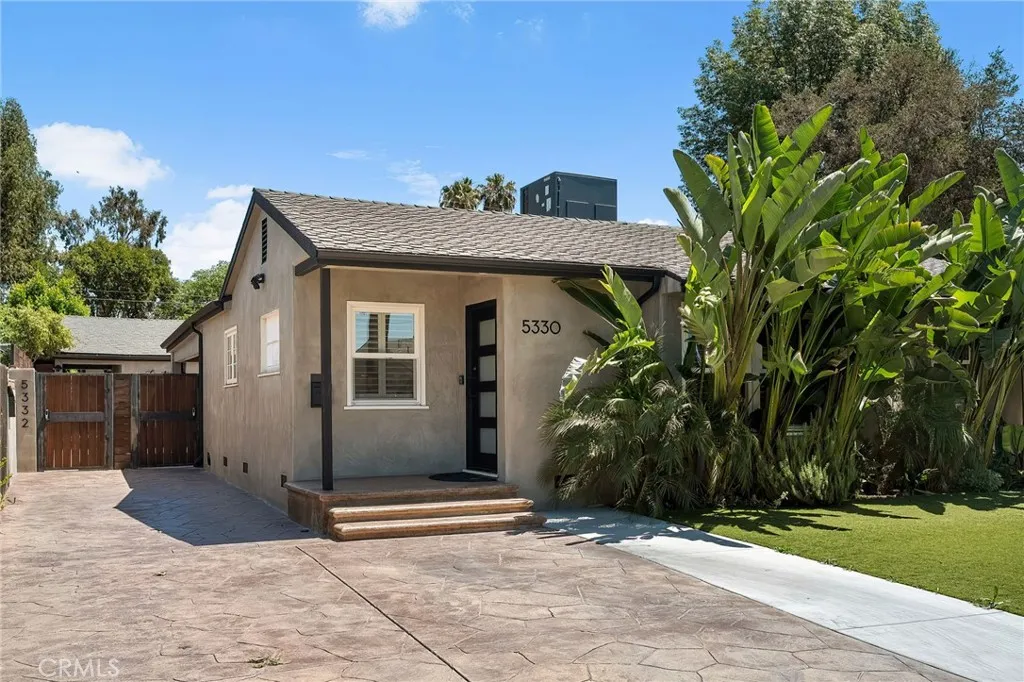 Welcome to this beautifully upgraded and move in ready home in the heart of Sherman Oaks, offering a perfect combination of style, comfort, and functionality. Step inside to a bright open layout with rich hardwood floors, recessed lighting, and a seamless flow between the living, dining, and kitchen areas. The spacious living room is both inviting and elegant, featuring custom finishes and abundant natural light. The kitchen is designed for both everyday living and entertaining, with custom cabinetry, high end appliances, generous counter space, and a large center island with seating. A built in office area adds incredible functionality, perfect for working from home while staying connected to the main living space. The bedrooms are well proportioned and thoughtfully designed. The primary suite offers a comfortable retreat with ample closet space and a beautifully finished bathroom. The home also features French doors that open to the backyard, creating a true indoor outdoor lifestyle ideal for relaxing or hosting. The exterior showcases a clean modern look with a private driveway, gated access, and lush landscaping that adds both privacy and curb appeal. Move in ready and ideally located near shopping, dining, and everything Sherman Oaks has to offer, this home truly checks every box.