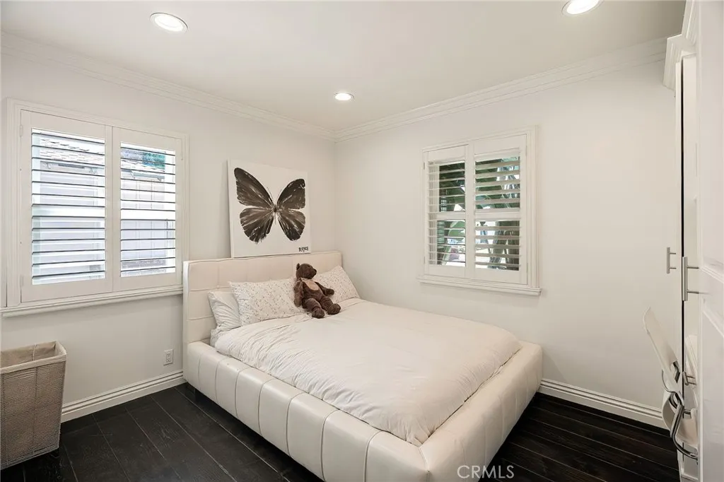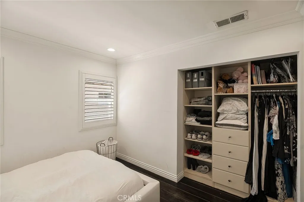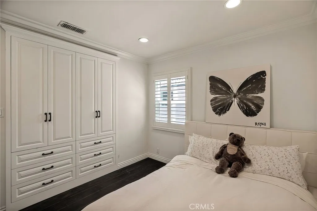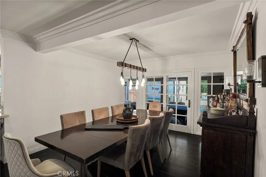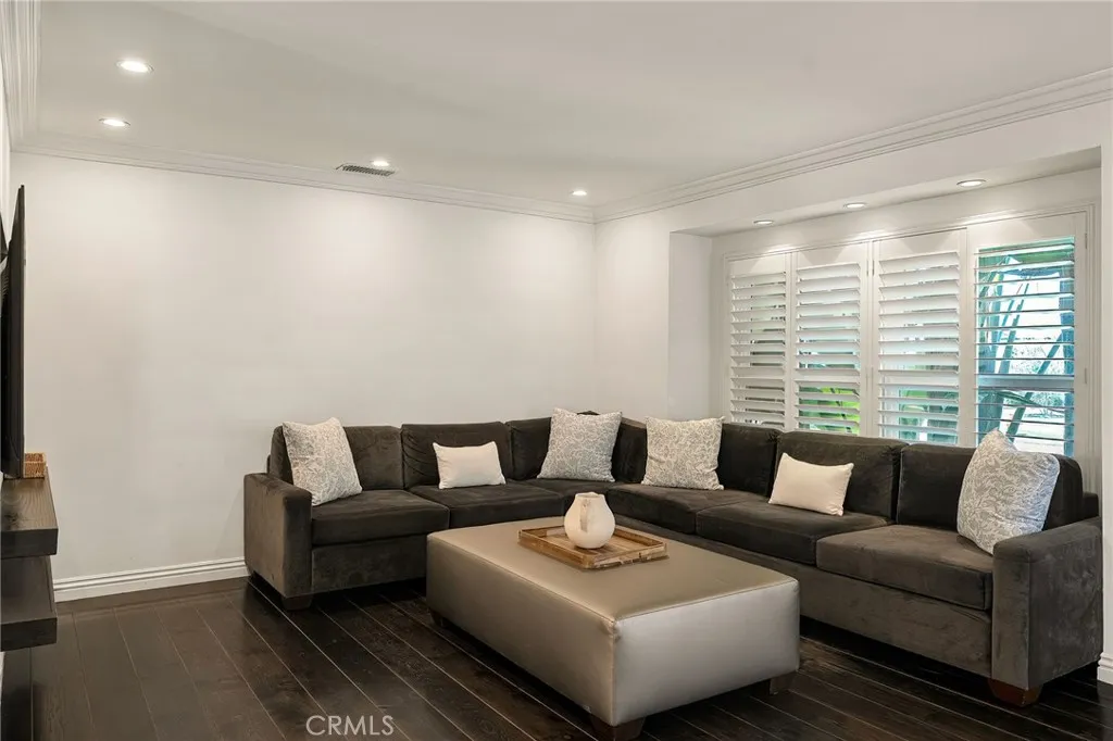 Welcome to this beautifully upgraded and move in ready home in the heart of Sherman Oaks, offering a perfect combination of style, comfort, and functionality. Step inside to a bright open layout with rich hardwood floors, recessed lighting, and a seamless flow between the living, dining, and kitchen areas. The spacious living room is both inviting and elegant, featuring custom finishes and abundant natural light. The kitchen is designed for both everyday living and entertaining, with custom cabinetry, high end appliances, generous counter space, and a large center island with seating. A built in office area adds incredible functionality, perfect for working from home while staying connected to the main living space. The bedrooms are well proportioned and thoughtfully designed. The primary suite offers a comfortable retreat with ample closet space and a beautifully finished bathroom. The home also features French doors that open to the backyard, creating a true indoor outdoor lifestyle ideal for relaxing or hosting. The exterior showcases a clean modern look with a private driveway, gated access, and lush landscaping that adds both privacy and curb appeal. Move in ready and ideally located near shopping, dining, and everything Sherman Oaks has to offer, this home truly checks every box.