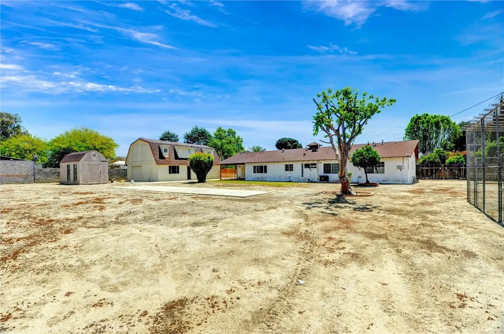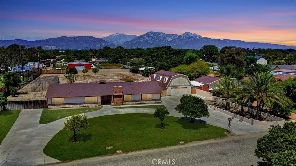 Rare opportunity to own a sprawling 1+ acre property in Chino with incredible potential! This single-story home offers over approximately 2,400 sq ft of living space, featuring 4 bedrooms and 3 bathrooms, providing a flexible layout for a variety of needs. The property truly impresses with its expansive grounds and amenities, including an oversized detached garage with space for multiple vehicles ideal for car enthusiasts, contractors, or anyone needing substantial storage. There is also a partially completed space above the garage, offering exciting potential for a future ADU, guest quarters, or possible income-producing unit (not currently permitted as living space). A huge, newer concrete circular driveway completed in 2021 provides abundant parking, and there's room for RV parking, additional vehicles, toys, or equipment. The grounds are dotted with mature fruit trees (persimmon, orange, grapefruit, pomegranate and more) and include existing animal enclosuresperfect for those interested in a hobby farm setup, chickens, or other small animals. The home includes a newer HVAC system also installed in 2021, offering a great starting point for updates. While the property does need some TLC, it presents a fantastic opportunity for buyers to build sweat equity and customize to their vision. With its rare lot size, versatile improvements, and endless possibilities, this is a one-of-a-kind property you wont want to miss! Please Note: Home is being sold AS-IS.