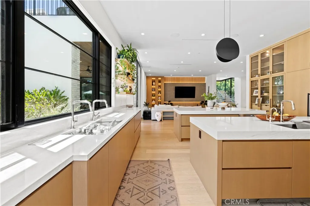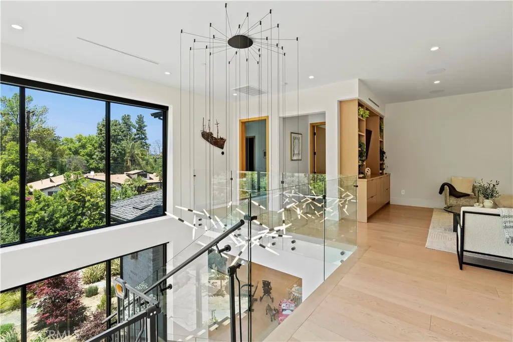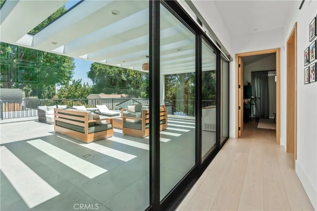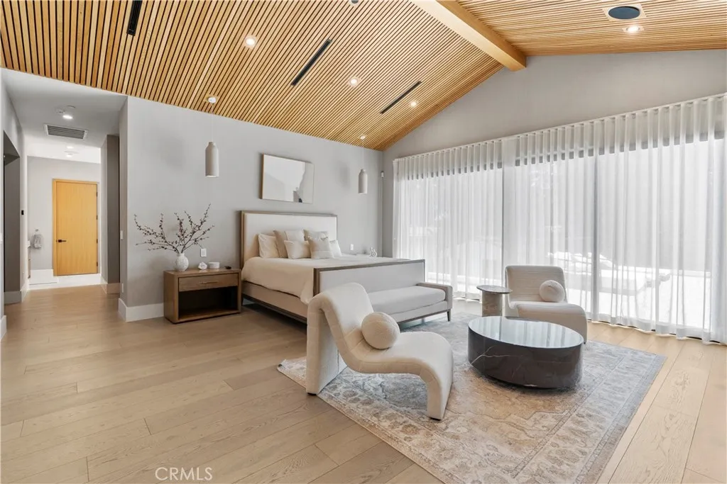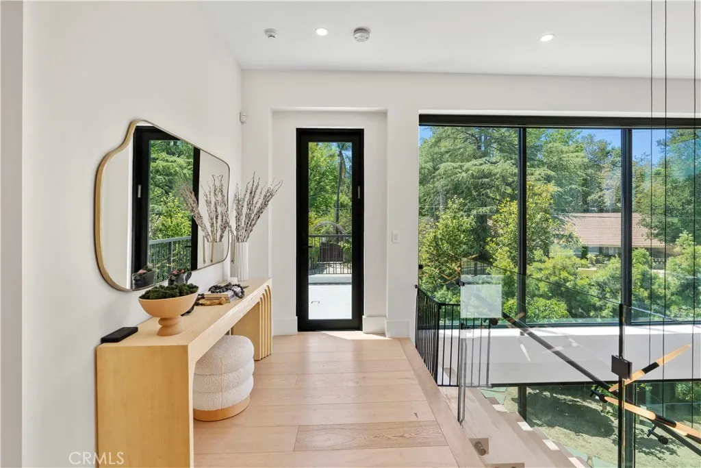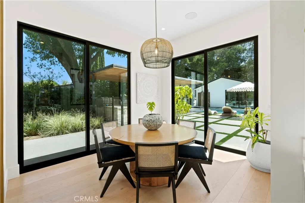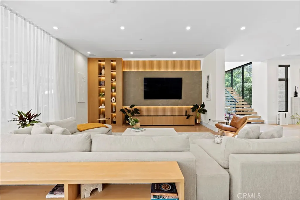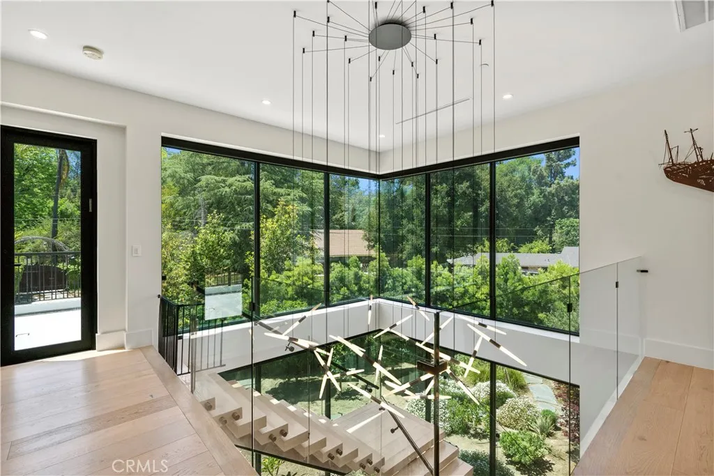 AVAILABLE 06/15/26 - Set on a coveted corner lot south of the Boulevard in Woodland Hills, this extraordinary newer-construction estate is a masterclass in modern luxury, seamlessly blending refined design, advanced technology, and resort-inspired living. From the moment you enter, the home reveals a level of craftsmanship and intention rarely seenwhere every finish, feature, and system has been thoughtfully curated. The heart of the home is a stunning chefs kitchen outfitted with Thermador built-in appliances, complemented by a fully equipped secondary dirty kitchen designed for effortless entertaining. With dual dishwashers, two refrigerators, three full sinks, and a reverse osmosis beverage station with instant hot water, the space is as functional as it is beautiful. Technology is fully integrated yet elegantly discreet, with a Control4 smart home system, automatic blinds throughout, and enterprise-grade Wi-Fi powered by a dedicated server and multiple extenders. Over 30 in-wall speakers create a seamless multi-zone audio experience, while a custom 105-inch home theater with 8K projection, Dolby Atmos surround sound, acoustic paneling, and bespoke recliner seating delivers a true cinematic escape. The home continues to impress with custom cabinetry in every room, multiple hidden safes, a private gym, and a host of thoughtful luxury detailsincluding Toto resort-style washlets for elevated everyday living. Designed to rival a five-star resort, the outdoor spaces are nothing short of spectacular. A sprawling 46-foot resort-style pool and spa with Baja shelf, Wi-Fi controls