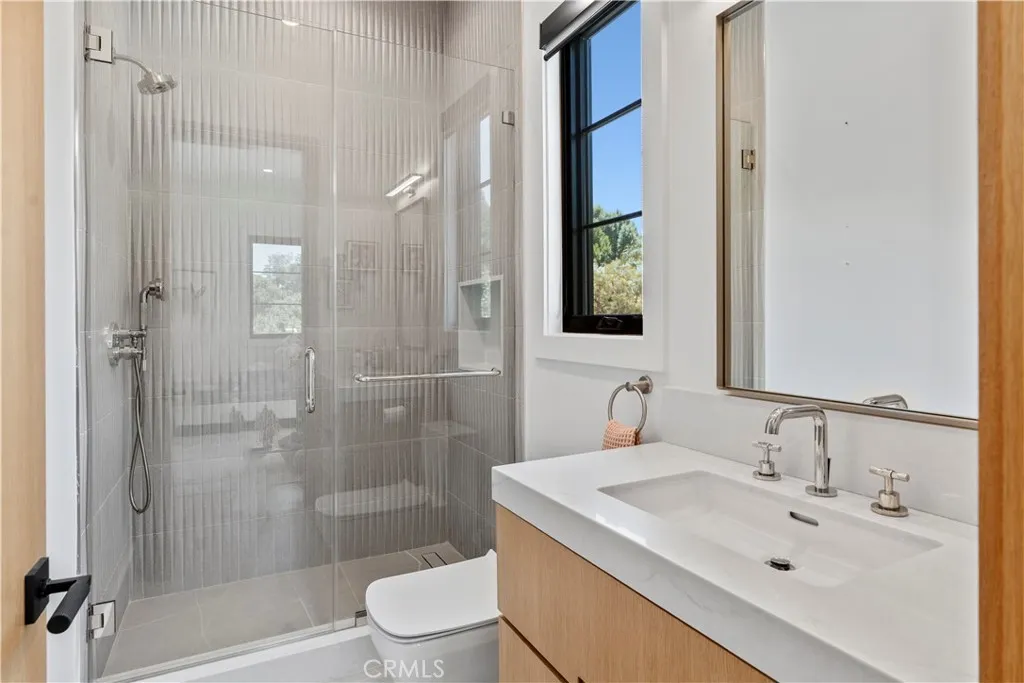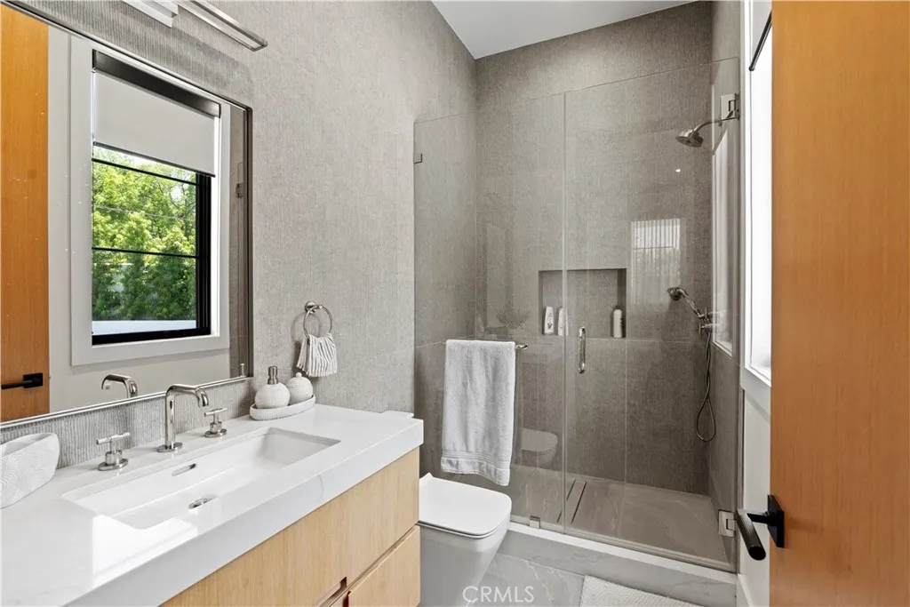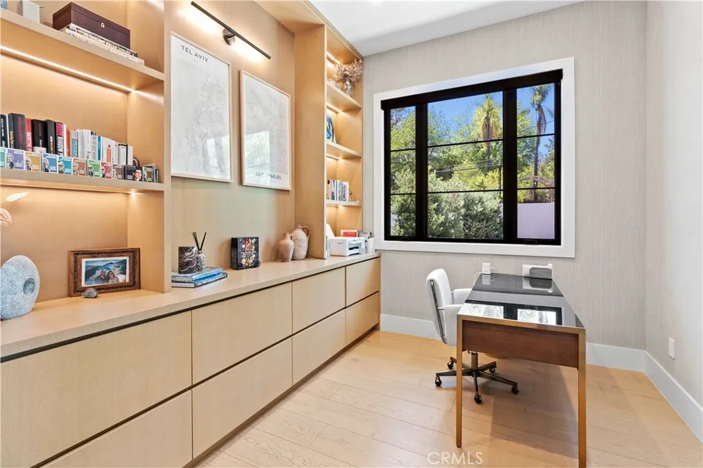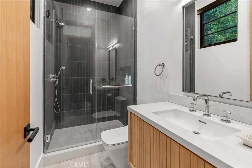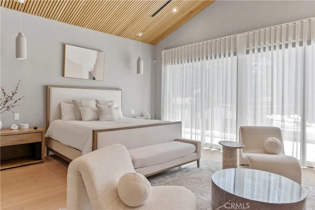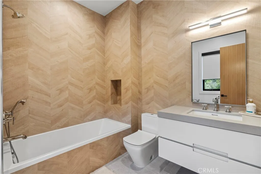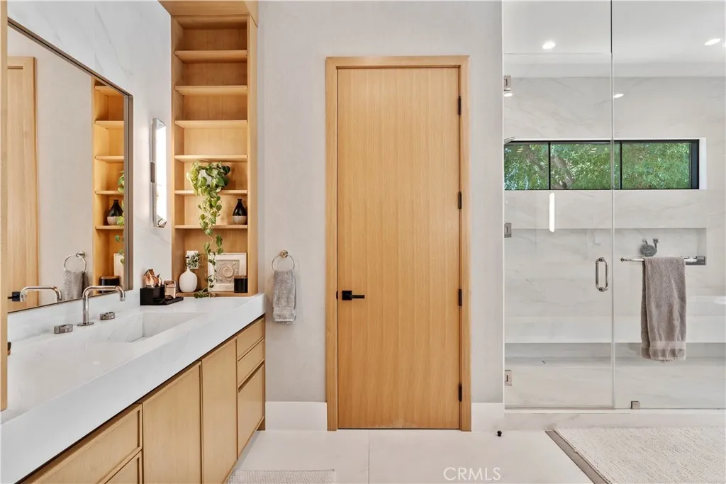 AVAILABLE 06/15/26 - Set on a coveted corner lot south of the Boulevard in Woodland Hills, this extraordinary newer-construction estate is a masterclass in modern luxury, seamlessly blending refined design, advanced technology, and resort-inspired living. From the moment you enter, the home reveals a level of craftsmanship and intention rarely seenwhere every finish, feature, and system has been thoughtfully curated. The heart of the home is a stunning chefs kitchen outfitted with Thermador built-in appliances, complemented by a fully equipped secondary dirty kitchen designed for effortless entertaining. With dual dishwashers, two refrigerators, three full sinks, and a reverse osmosis beverage station with instant hot water, the space is as functional as it is beautiful. Technology is fully integrated yet elegantly discreet, with a Control4 smart home system, automatic blinds throughout, and enterprise-grade Wi-Fi powered by a dedicated server and multiple extenders. Over 30 in-wall speakers create a seamless multi-zone audio experience, while a custom 105-inch home theater with 8K projection, Dolby Atmos surround sound, acoustic paneling, and bespoke recliner seating delivers a true cinematic escape. The home continues to impress with custom cabinetry in every room, multiple hidden safes, a private gym, and a host of thoughtful luxury detailsincluding Toto resort-style washlets for elevated everyday living. Designed to rival a five-star resort, the outdoor spaces are nothing short of spectacular. A sprawling 46-foot resort-style pool and spa with Baja shelf, Wi-Fi controls