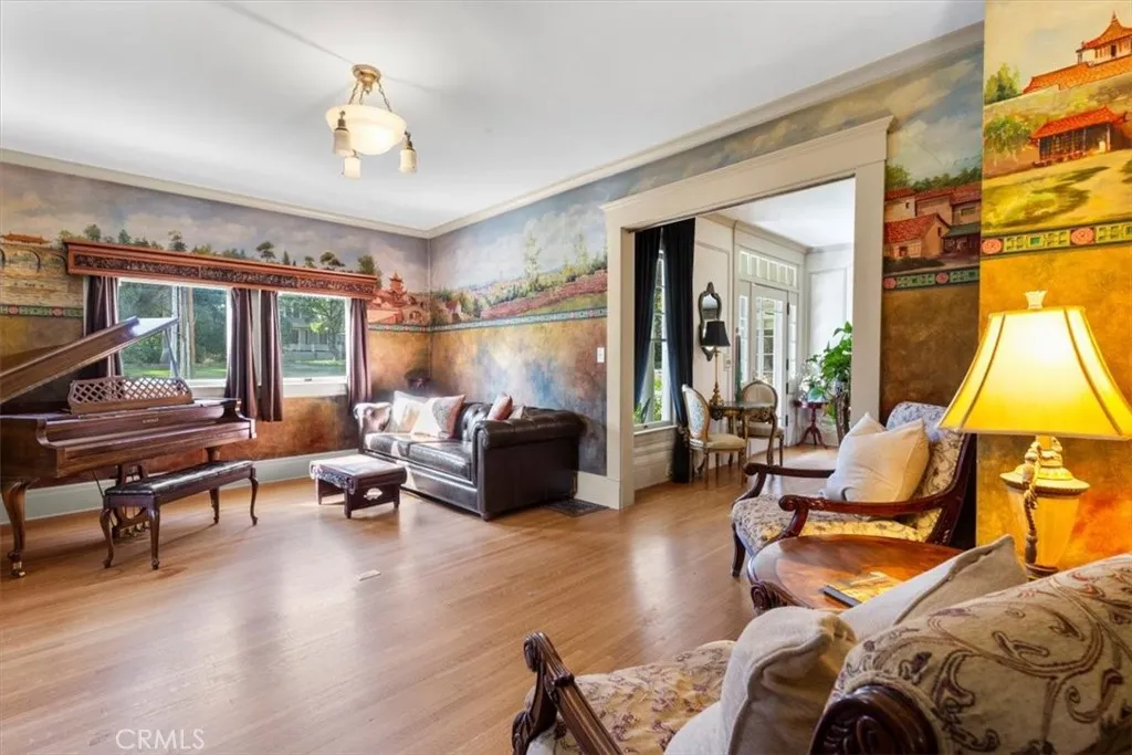 Be part of history and own a landmark rather than just a house. Featured on HGTV and a proud recipient of the Redlands Heritage Award, the Otis-Clem Estate is the ultimate treasure for those who crave character over "cookie-cutter" designs. This once-in-a-century opportunity allows you to steward a home that truly lives like a movie set, positioned on a sprawling 0.74-acre lot on the prestigious corner of Highland and Monterey. Imagine hosting summer nights on the first-ever lit tennis court in Southern California, a true piece of West Coast history. The grounds are further enhanced by a variety of mature fruit trees that add to the estate's lush, private atmosphere. Inside, you enter a living work of art featuring the famous "Chinese Room" and 6-foot mahogany wainscoting hand-painted by Edward Langley, the legendary Art Director for Douglas Fairbanks' Robin Hood. His cinematic touch and intricate gold-leaf carvings make every room feel like a masterpiece, from the massive 20x40 Great Den with its two-story rock fireplace to the whimsical inside-outside fishpond that has been a Redlands legend since 1925. The estate perfectly balances historic integrity with modern essential updates and high-end restorations. The kitchen and bathrooms have been beautifully refreshed, now featuring a new Italian vintage stove and a custom fridge. Significant infrastructure improvements include a new roof, updated plumbing, a new upstairs AC unit, and all-new ducting throughout. Practicality meets luxury with ample storage in the basement and attic, while the garage is equipped with a 240-vol