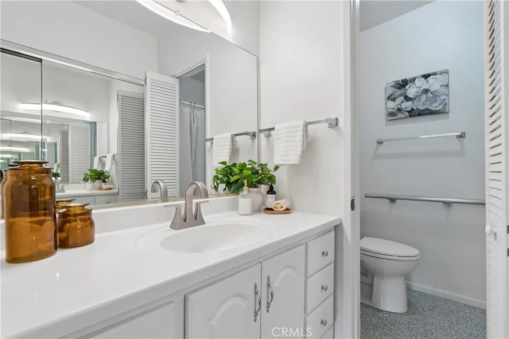 Welcome to single story living at the highly desirable community of the Valencia Racquet Club. This charming 3 bedroom, 2 bath property offers 1,307 sq ft of comfortable living space with numerous upgrades throughout, and lives like a single family home. Step inside to a light and bright living room featuring a gorgeous brick accent fireplace and views of the private backyard. Adjacent dining area offers easy indoor outdoor flow with sliding glass doors leading to the patio. The kitchen is warm and inviting with painted cabinetry, updated hardware, newer sink and faucet, updated stove and vent, and plenty of counter space including a breakfast bar for casual dining. All newer windows, sliders, carpet, vinyl flooring, upgraded fans and light fixtures add to the homes clean, modern feel. Down the hall are two nicely sized secondary bedrooms, a full guest bathroom with a shower/tub combo and new sink, and the spacious primary suite. The primary bedroom features dual closets and a private enclosed patio, as well as an ensuite bath with walk-in shower, new sink, updated toilet, and hand rails for added accessibility. Additional highlights include: updated A/C and furnace, copper plumbing, newer electrical panel and rain gutters, newer AstroTurf in the front yard, upgraded ceiling fans are found throughout, and a pull-down attic ladder in the garage. The quaint backyard offers a peaceful retreat with a covered patio and no direct neighbors in front, plus plenty of guest street parking. Residents of the Valencia Racquet Club enjoy fantastic amenities including a community pool, sp