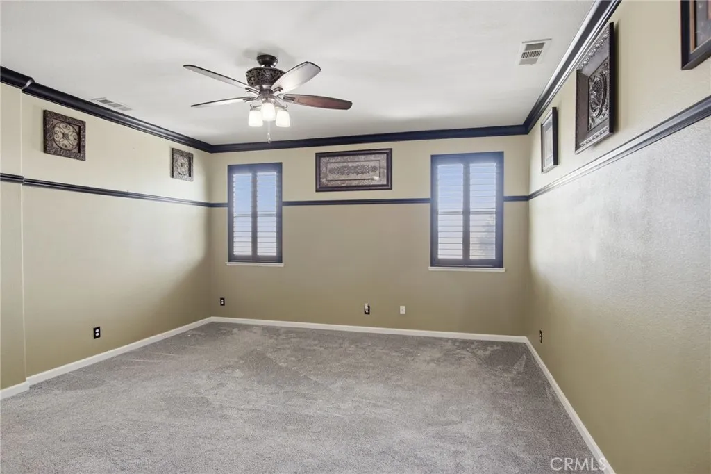 Absolutely stunning home in Bellevue Ranch. This turnkey North Merced home offers comfort, space and convenience with easy access to CatTracks, Merced College, and UC Merced. Step inside to find a thoughtful layout featuring a formal Livingroom, family room, formal dining area as well as eat-in kitchen. Gourmet kitchen with granite counters, gas cooktop and double ovens. One bedroom and full guest bath is downstairs. Upstairs we have 4 bedrooms with 3 full bathrooms. Large primary bedroom with primary bathroom walk-in showers, soaking tub, double sinks and his and hers walk in closets. Additional highlights include an upstairs laundry room with cabinetry, hardwood flooring throughout the main level, plantation shutters on several windows, custom entertainment center, custom mantel, whole house fan, water softener, a spacious 3 car tandem garage with custom cabinets and entertainment center and beautifully landscaped front and backyards. The backyard is perfect for relaxing or hosting