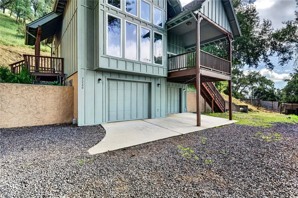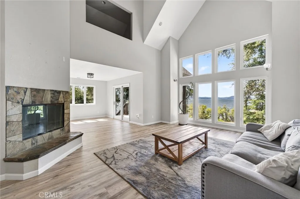 Lakeview retreat on 14.75 private acresfully renovated in 2023 and move-in ready. This 3-story home offers the perfect blend of modern upgrades and peaceful seclusion, set on a private dirt road with expansive views of the lake and surrounding hills. The main level features a bright, open living space with soaring ceilings, a wood-burning fireplace with automatic gas starter, and stunning bay windows that frame the lake. Two bedrooms and a full bathroom sit on this level, along with a spacious kitchen complete with a walk-in pantry. A large sliding glass door opens to a covered deckideal for taking in the views year-round. Upstairs, the primary suite is its own private retreat with a walk-in closet, walk-in tile shower, private balcony, plus a loft-style office or flex space overlooking the living area. The lower level includes a 2-car garage with two separate entry doors, plus a laundry room, bathroom, and utility roomoffering flexibility for storage, workspace, or potential additional living use. Serviced by its own well and septic, this property delivers both independence and privacy, while still offering modern comfort throughout. A rare opportunity to own acreage, views, and a fully upgraded home all in one.