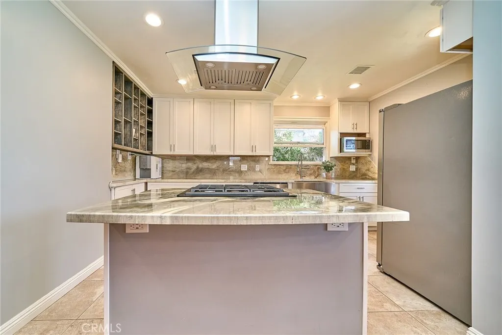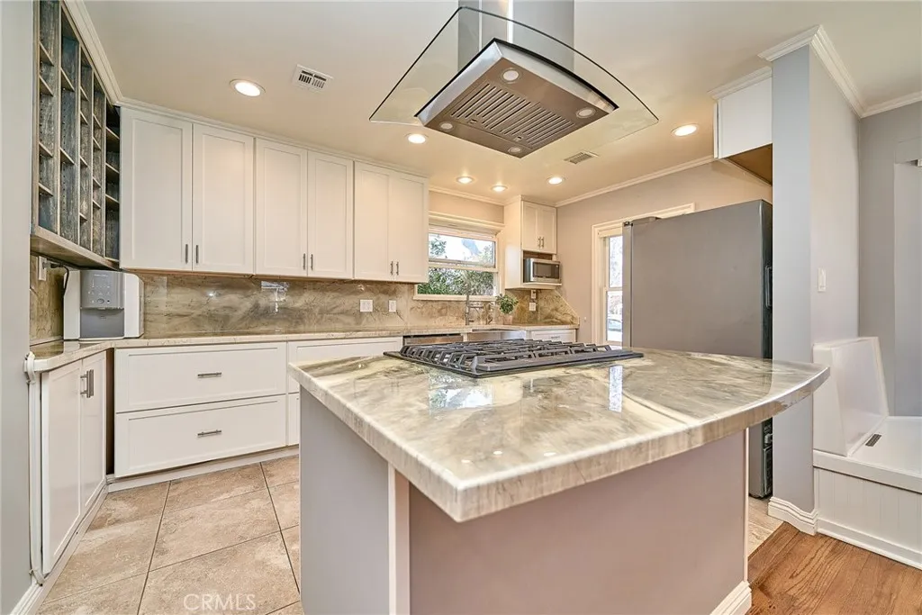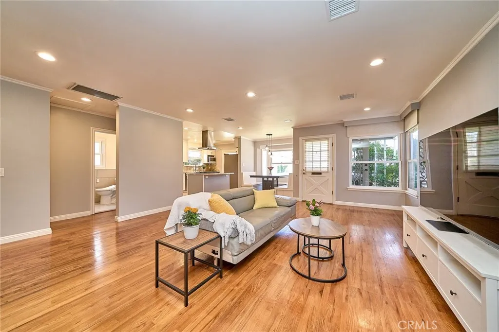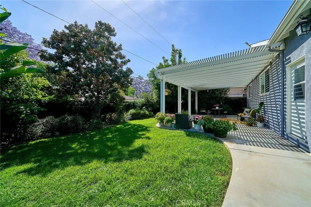 Experience the California dream in this beautiful 4-bedroom, 3-bath residence, set in a prestigious, peaceful neighborhood known for its friendly community and tree-lined streets. This home showcases a bright open floor plan with effortless flow between the living, dining, and kitchen and to the bedrooms. Elegant features include hardwood flooring, recessed lighting throughout, and a stylish chefs kitchen complete with deep drawers, self-closing cabinetry, a farmhouse sink, and an island with a built-in range and suspended hood. Two bedrooms offer en-suite baths, providing both comfort and privacy. Additional improvements include copper plumbing, dual-pane windows, central heat and A/C, and a garage with 240V EV charging capability. A split-level design leads down to two bedrooms with backyard access, while windows frame serene views of the lush, beautifully landscaped yard. The backyard is a private retreat, with charming details, manicured hardscape, and an atmosphere of calm and relaxation. Further highlights include tall closets, remote-controlled lighting throughout the home, and ample parking in front of the garage. Surrounded by mature trees and rich greenery, the home offers a rare and picturesque setting. Conveniently located just 5 minutes from the markets, this is a special opportunity to enjoy beauty, comfort, and everyday convenience in one exceptional home.