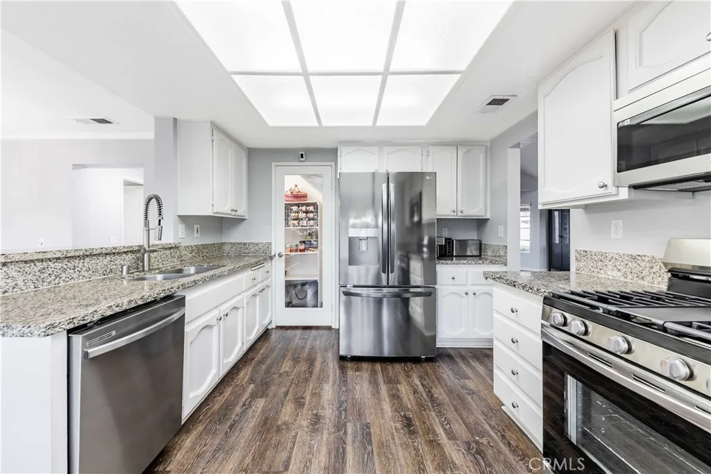 Welcome to a home that blends warmth, thoughtful upgrades, and everyday functionality in one of Murrietas most convenient and established neighborhoods. With striking curb appeal, mature landscaping, and a spacious three-car garage, this home immediately sets itself apart. Step inside to soaring ceilings and an abundance of natural light that create a bright, open atmosphere throughout. The flexible front living space offers endless possibilitiesperfect as a formal dining area, additional lounge, or entertaining space. As you move further in, the home opens to a beautifully updated kitchen that truly serves as the centerpiece. Featuring stunning countertops, brand new appliances, a smart range, a sleek Kohler faucet, and an expansive walk-in pantry, this kitchen delivers both style and everyday practicality. The adjacent breakfast nook and inviting family room with fireplace create a seamless flow for gatherings, holidays, or quiet nights at home. A highly desirable main-floor bedroom and full bathroom provide ideal flexibility for guests, multigenerational living, or a private office setup. Upstairs, youll find generously sized secondary bedrooms and a refreshed bathroom, while the primary suite offers a peaceful retreat. With vaulted ceilings, dual sinks, a soaking tub, separate walk-in shower, and beautiful views of the surrounding hills, this space is designed for comfort and relaxation. This home has been extensively upgraded with long-term value in mind, including a nearly complete PEX repipe, upgraded 200-amp electrical panel, newer water heater, whole house fan, and