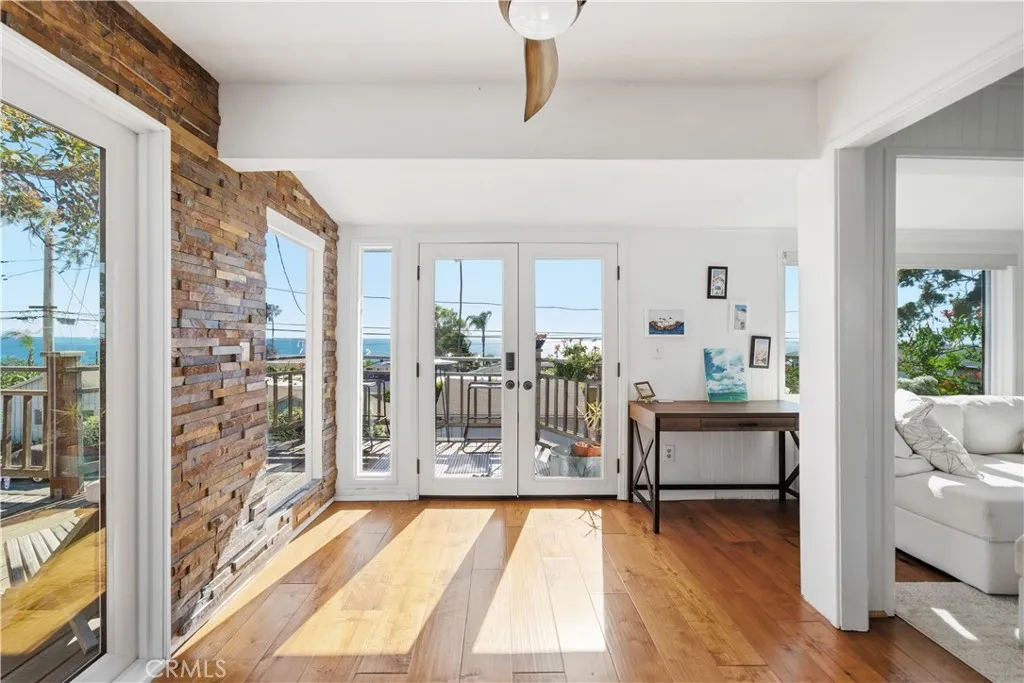 Tucked into the coastal hills of South Laguna Village, this furnished 3-month lease offers a rare opportunity to enjoy relaxed seaside living with ocean views and walkable beach access. Known as The Treehouse, the home blends classic beach cottage charm with thoughtful updates, creating a private and inviting retreat. Set on a beautifully positioned lot framed by a mature tree, the outdoor spaces feel both serene and unexpectedideal for quiet mornings or casual entertaining. Upstairs, the main living level captures sweeping Pacific views with glimpses of Catalina, filling the space with natural light and coastal perspective. The kitchen has been tastefully updated with quartzite countertops, custom cabinetry, and an open flow into the living and dining areas. French doors lead to a wraparound deck, extending the living space outdoors and creating an easy indoor-outdoor lifestyle. A gas fireplace adds warmth and character for cooler evenings. The lower level hosts two bedrooms and a full bath, including a primary suite with its own private deck. The home is positioned on a quiet, recently improved street just moments from South Lagunas beaches, restaurants, and local shops. Table Rock, Thousand Steps, and West Street Beach are all nearby, along with access to Valido Trail for scenic coastal hiking. A comfortable, well-located coastal retreatavailable for a short-term stay in one of Laguna Beachs most desirable pockets.