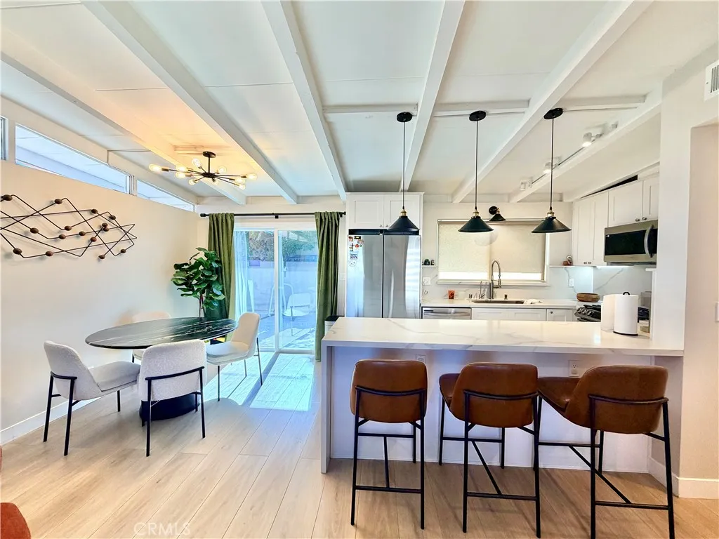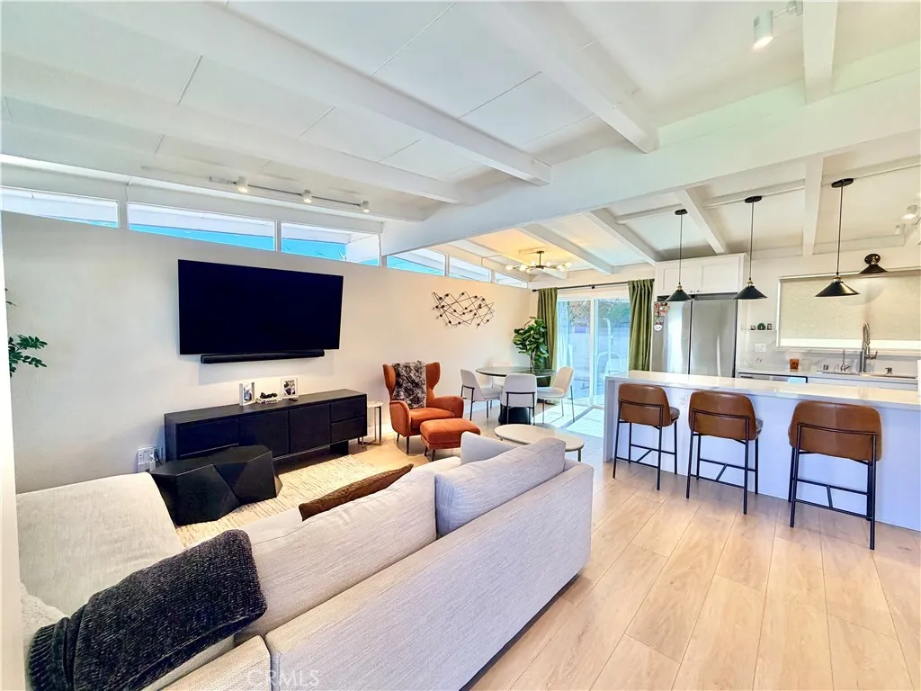 Welcome to 6591 Arizona St, Buena Park Modern Elegance Meets Everyday Comfort. Completely reimagined from top to bottom, this stunning 3-bedroom, 2-bathroom home is the definition of move-in ready. Nestled on a quiet street in one of Buena Park's most established neighborhoods, this beautifully remodeled residence blends contemporary finishes with timeless character. Inside, the wow factor is real. Soaring vaulted ceilings bring volume and character rarely found in a home this size, while an abundance of natural light pours through every room. Luxury vinyl flooring flows seamlessly throughout, setting a clean, modern tone. The kitchen is a showstopper. Anchored by a dramatic waterfall-edge quartz island with premium finishes, it's as functional as it is beautiful perfect for entertaining or everyday living. The primary suite is your personal retreat. Spacious and private, featuring an ensuite bathroom with dual sinks and upscale finishes designed for rest and relaxation. Outside, the lot delivers. A large front yard and expansive backyard offer endless possibilities weekend gatherings, a future ADU, or simply room to breathe. Solar panels and a security system add peace of mind and long-term value, while the attached 2-car garage completes the package. Prime Buena Park location minutes from Knott's Berry Farm, top-rated schools, major freeways (91 & 5), and a full range of dining, shopping, and entertainment. Turnkey, solar-equipped, and loaded with upgrades. Don't miss this one.