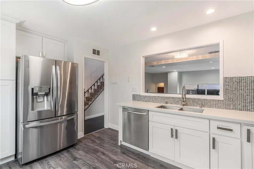 Tucked away within the Mission Townhomes community in Alhambra, this interior multi-level townhouse offers a quiet setting with a well-designed layout and generous living space. With 2 primary bedrooms and 2.5 bathrooms across 1,540 sq.ft., the home provides both comfort and flexibility. The main living area features high ceilings, creating an open, airy feel filled with natural light. An open floor plan connects the living and dining areas to an updated kitchen with quartz countertops, stainless steel appliances, and ample cabinetry. Upstairs, both bedrooms are configured as primary suites, each with its own en suite bathroomideal for privacy, guests, or a flexible living setup. The main primary suite features vaulted ceilings and dual closets. Additional highlights include recessed lighting, double-pane windows, a skylight, and great storage throughout. A private enclosed patio with a gazebo offers a comfortable outdoor space for relaxing or entertaining. The attached 2-car garage provides direct access, additional storage, in-unit washer and gas dryer hookups, a newer garage door, and a permitted EV charger hookup. The home also includes an updated water heater. The Mission Townhomes community includes a gated pool, spa, BBQ area, landscaped walkways, and guest parking. Conveniently located near award winning schools, Main Street dining, shopping, and Almansor Park, this home offers easy access to everyday essentials and local recreation.