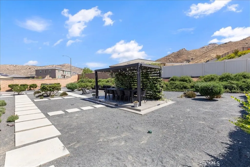 NO HOA and NO Mello-Roos! Welcome to 21021 Bison Mesa Rd, Riverside! A beautifully maintained, nearly new home in the highly sought-after Spring Mountain Ranch community. Built in 2020, this home offers 3 bedrooms and 2 bathrooms with a modern, functional layout. Situated on a desirable corner lot with RV potential, enjoy stunning mountain and hilltop views in a peaceful setting. The backyard is designed for both relaxation and entertaining, featuring a spacious gravel landscape with custom concrete stepping pads, drought-tolerant plants, fruit trees, a pergola with seating, and a large fire pit area. A separate concrete pad is already set up with wiring for a future spa or sauna. Inside, the home feels like NEW, enjoy a built-in surround sound system, water filtration system throughout and low solar lease payments for added savings. With its prime location, scenic views, and exceptional condition, this home stands out as one of the best deals in the area. Wont last, make it yours today! Come by our open house this weekend; OPEN HOUSE Saturday 04/25 12-3pm & Sunday 04/26 12-3pm.