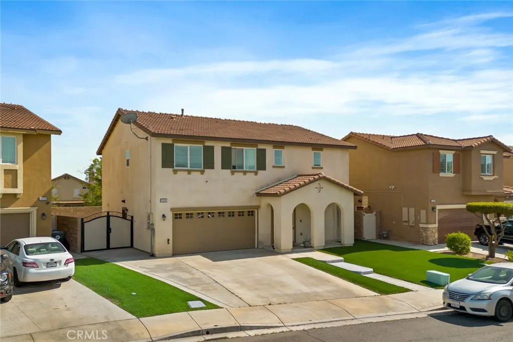 Welcome to this beautifully maintained 4-bedroom, 3-bath home, built in 2018, where modern style meets everyday comfort and thoughtful design! From the moment you step inside, youll appreciate the light and bright interior, upgraded flooring, and recessed lighting throughoutcreating a warm and inviting atmosphere in every room. A bedroom and full bathroom on the main floor offer the perfect setup for multi-generational living, guests, or a private home office. Upstairs, an oversized loft creates an incredible flex spaceideal for a kids hangout, game room, or cozy movie nights. The spacious primary suite is a true retreat, featuring a beautifully appointed en-suite bathroom with dual sinks, a large walk-in shower, and a generous walk-in closet. Step outside and fall in love with the no-maintenance backyard, thoughtfully designed for easy living and effortless entertaining. Enjoy the covered patio with two ceiling fansperfect for weekend gatherings, or simply unwinding at the end of the day. The widened driveway adds extra convenience and functionality, while a backyard storage shed adds valuable extra space. Located in the heart of Jurupa Valley, youre just minutes from Jurupa Valley Regional Park, Sky Park, and Mt. Rubidoux, offering endless opportunities for outdoor fun. Golf courses are also nearby, making this an ideal location for an active lifestyle. Even betterthis home comes with no HOA, giving you the freedom and flexibility thats hard to find. Plus, this home features leased solar panels with two attached batteries. As an added bonus, all appliances are included in