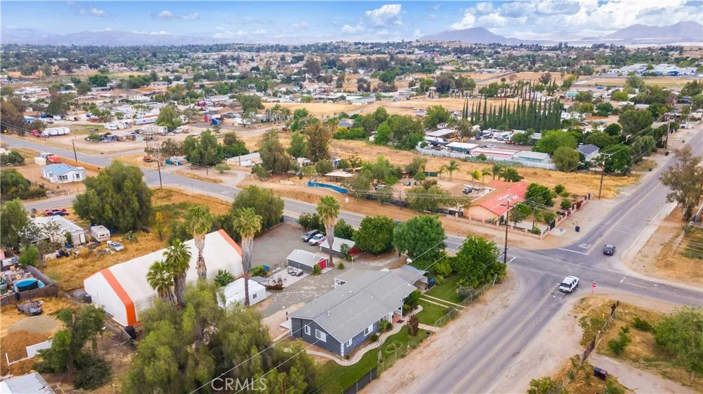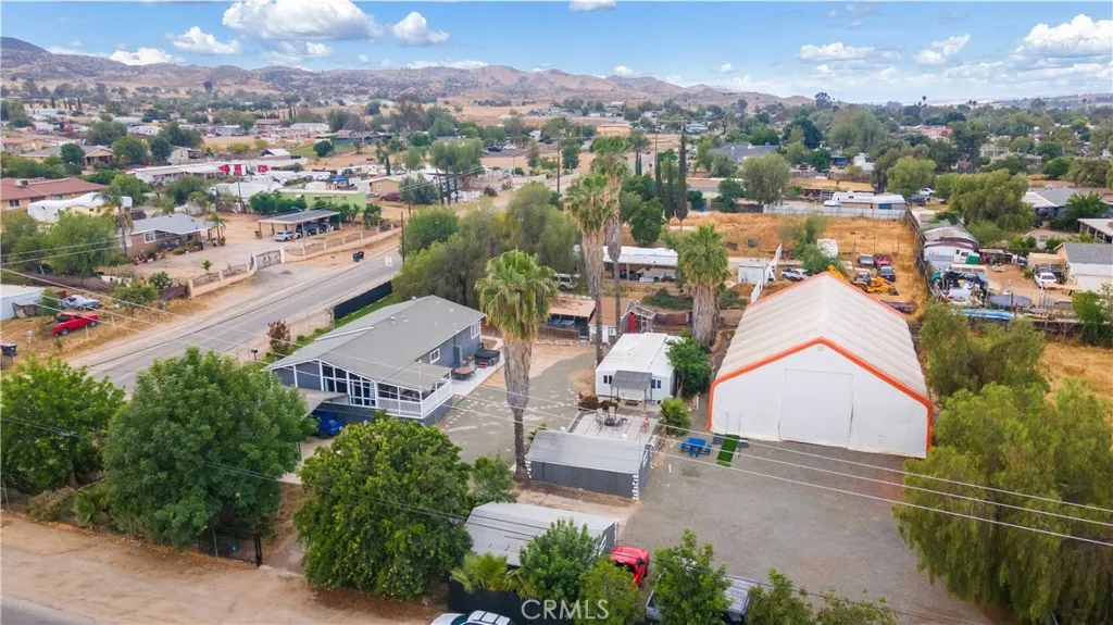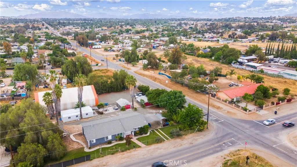 Home with multiple units, income potential, and large usable land! A unique opportunity featuring a 3-bed single-family home in Perris set on two parcels totaling approximately 34,000 sq ft. The main residence offers 3 bedrooms, 2.5 bathrooms, and approximately 2,000 sq ft of living space with an open floor plan, rear yard deck, and central air and heat for year-round comfort. Built in 1950, but all updated for todays lifestyle. Looks Great. In addition to the main home, the property includes two ADU-style outbuildings: a small 1 room 1/2 bath efficiency unit and an approximately 800 sq ft container home with 3 bedrooms and 1 bathroom, ideal for extended family living or rental income. A standout feature is the expansive 4,000 sq ft covered enclosed structure measuring approximately 50 ft by 80 ft, currently used as a volleyball training facility but offering a wide range of potential uses including gym, workshop, storage, or business space. Additional improvements include two garage structures (one 2-car and one 3-car), two covered RV-sized carports accommodating approximately three vehicles, and three large vehicle access gates from two street frontages, including one automatic gate. The large, usable land offers space for expansion, parking, equipment, or even horses. Parcels may be sold separately (buyer to verify), adding flexibility for investors or future planning. This property answers the question: does a home in Perris offer multi-generational living, income potential, and large-scale utility? This one does. See all the photos and then you have to see it for yours