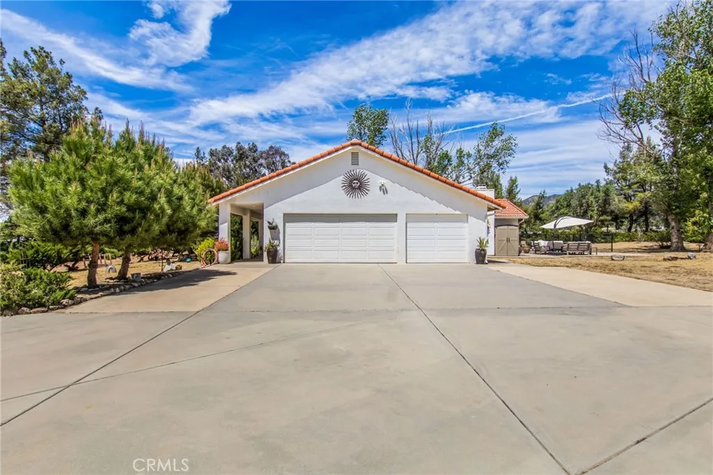 This is THE ONE!!!! Located in the beautiful Lake Riverside Estates only 25 min outside of Temecula. This gorgeous custom ranch home is turnkey and immaculately maintained with upgrades on a fully flat, fenced and usable 2.7 acres graced with mature trees throughout the entire property. Truly your own park retreat setting! Horse keeping area with covered stalls and turnout, tack/feed room and miles of direct access trails. No horses? That's okay this is a great outdoor storage area, gym area or whatever your delight. The home is a fabulous classic ranch style but has been upgraded with newer large picture windows and extra wide and tall glass doors/sliders for optimum light and views! HVAC just replaced in Nov 2024, all new breakers (except one) with refurbished electrical panel. Private well with great water quality, circular concrete drive, decorative wrought iron fencing, outdoor patio/dining area, separate black chain link fenced-in pet area (or play area), PRIVACY with surrounding large junipers keeping your private park, private!!!! The flow of the floorplan of the home is wonderfully open and bright allowing for views of all the outdoor trees and mountains. The spacious living area opens to an additional family/dining area with fireplace which opens to a wonderful kitchen with pantry and lots of storage cabinetry. Several lighting fixtures, door handles and fixtures have been updated. Bonus, an insulated MUSIC STUDEO!!!! The garage has a built in sound insulated music studio which could also be used as a home office or other bonus room (this could also be removed to