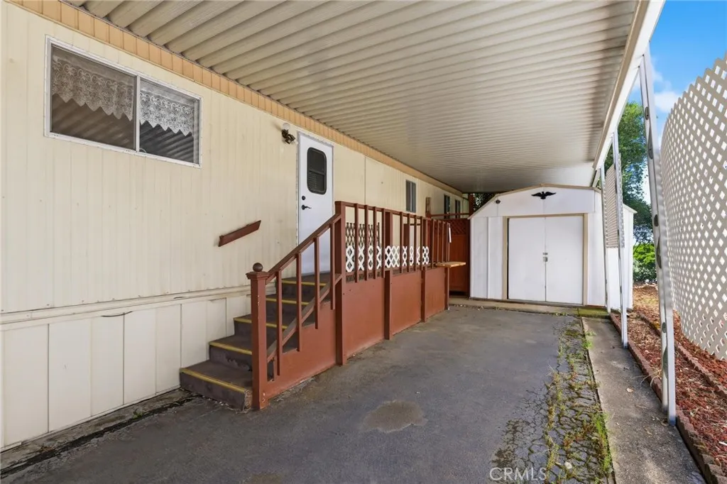 Welcome to easy living in the sought-after Olive Hill Mobile Home Park, a desirable 55+ community offering comfort, convenience, and wonderful amenities. This charming 2 bedroom, 2 bathroom home with 1,040 square feet enjoys a prime location directly across from the clubhouse, making it easy to stroll over to the community pool, outdoor gathering areas, recreation room, and fitness center just steps from your front door. Step inside to find a spacious living room and dining area complete with a built-in hutch, creating both character and functionality. The primary suite offers thoughtful built-ins including two closets, built-in drawers, a desk area, and private bathroom. Enjoy morning coffee or unwind in the evenings from the large covered front porch, a wonderful place to relax and enjoy the neighborhood setting. This home also features valuable recent upgrades including a new air conditioner, new refrigerator, new dishwasher (never used), and new garbage disposal, offering added comfort and peace of mind. Additional features include covered parking, a storage shed, and a comfortable layout ready to make your own. Ideally situated in a perfect location close to Oroville Hospital, shopping, restaurants, and everyday conveniences, this home offers peaceful senior living while keeping everything you need nearby. Residents of Olive Hill enjoy exceptional amenities including a pool, clubhouse, outdoor cooking area, fitness center, social spaces, and planned activities, creating a vibrant community atmosphere. If youve been looking for affordable, low-maintenance living in a we