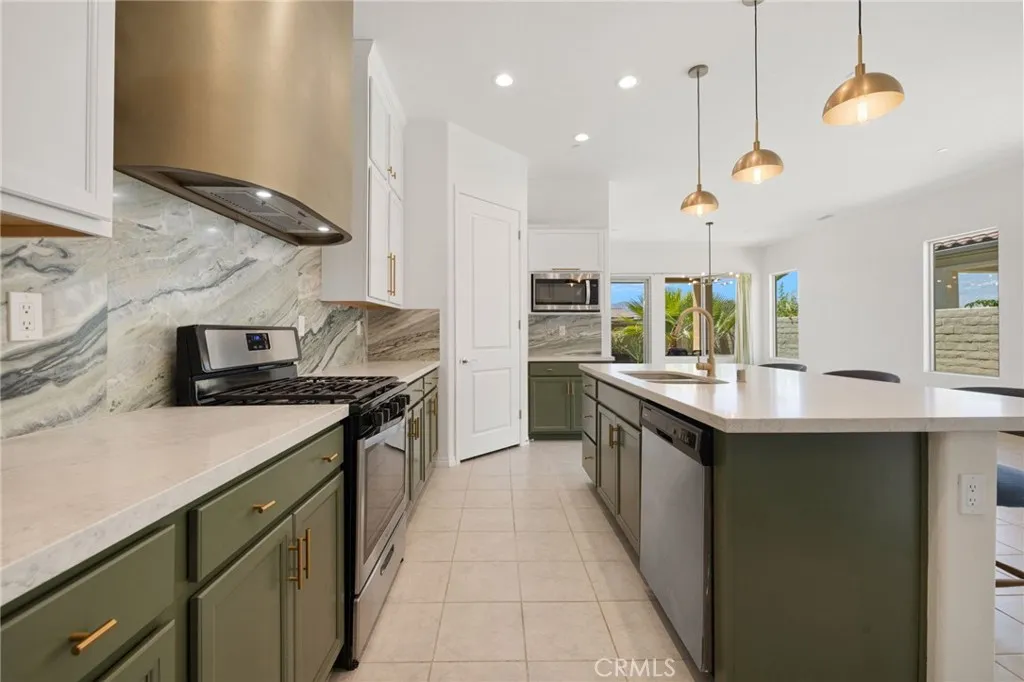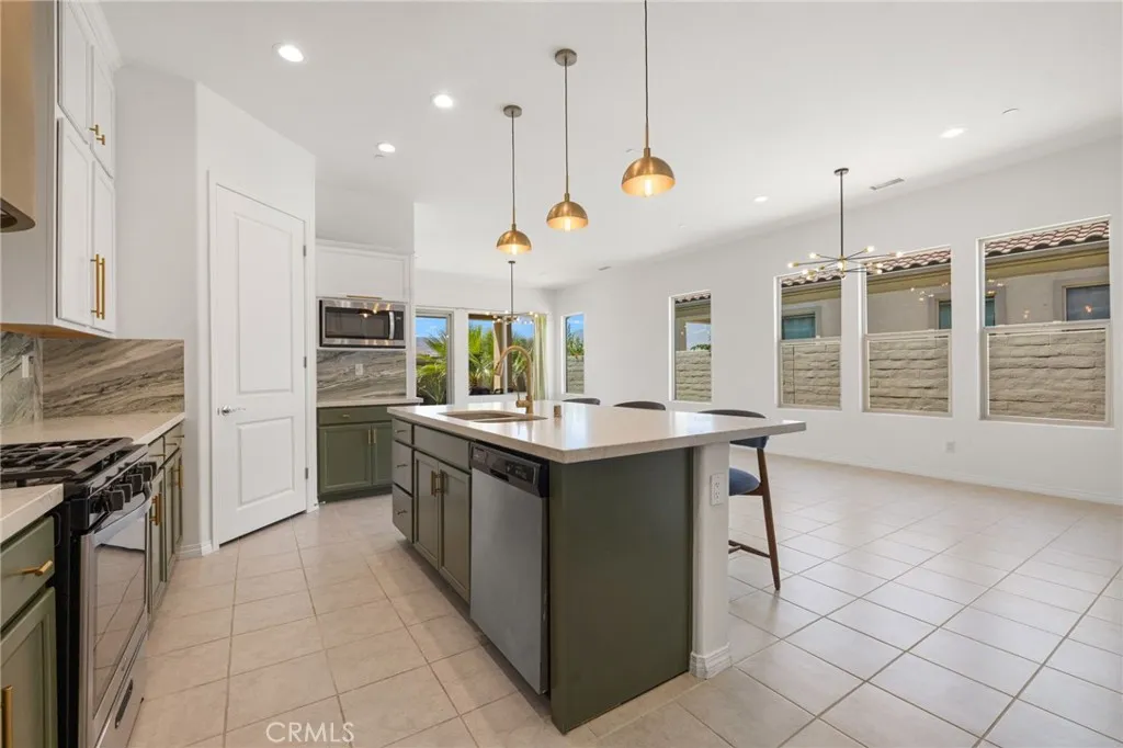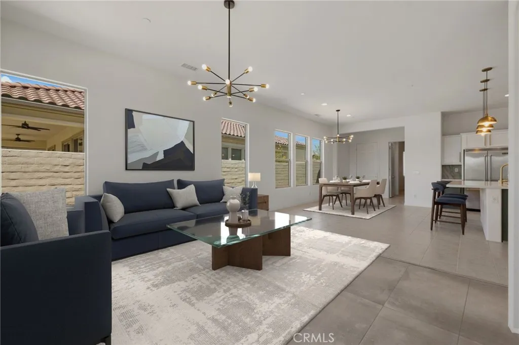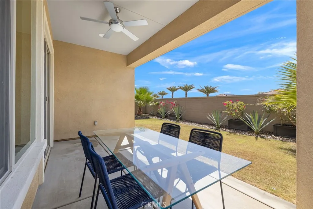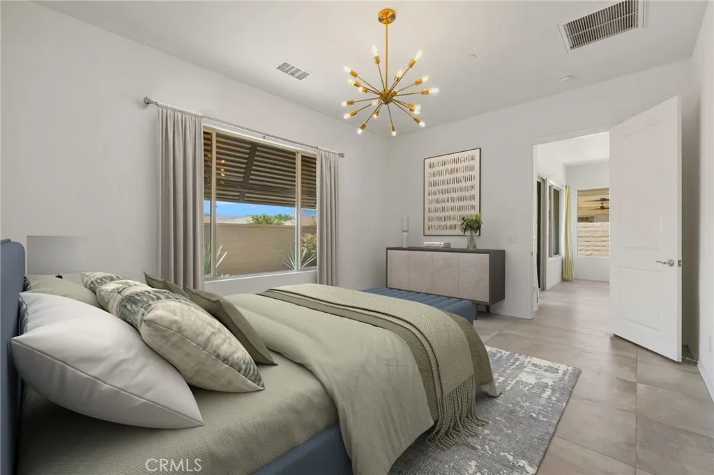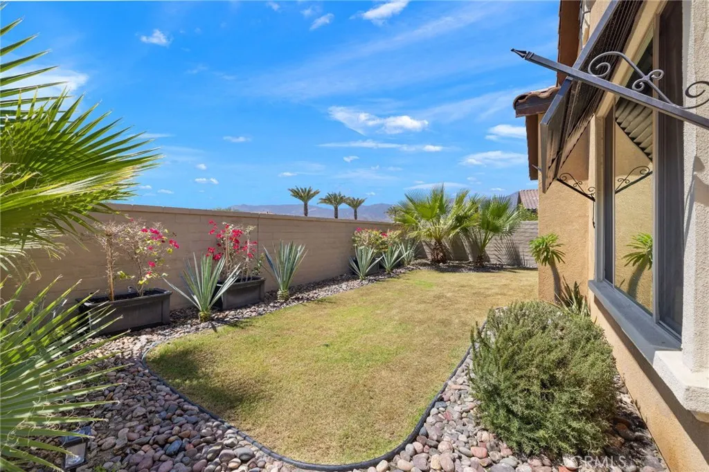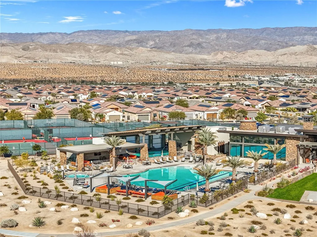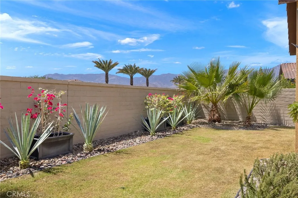 Welcome to one of the most highly upgraded Expedition models in Del Webb Rancho Mirage, featuring a rare 3-bedroom configurationan uncommon find for this floor plan that adds valuable flexibility and appeal. Designed for both everyday living and effortless entertaining, this home showcases a custom wet bar with wine fridge, designer lighting, built-in cabinetry, and a brass-tone sink. The open-concept layout is bright and inviting, centered around a chefs kitchen with quartz countertops, full-height porcelain backsplash, custom vent hood, premium appliances, and elegant double-stacked cabinetry. Two of the three bedrooms offer private en-suite baths, creating ideal separation for guests, while the spacious primary suite serves as a relaxing retreat, and customized walk-in closets and designer lighting elevate every space. Additional features include OWNED SOLAR, a tankless water heater, upgraded laundry room with sink and cabinetry, fire sprinkler system, and a large garage. Step outside to a beautifully landscaped natural grass yard with stunning mountain viewsperfect for enjoying desert sunsets. Located in the guard-gated Del Webb 55+ community, residents enjoy resort-style amenities and a vibrant, active lifestyle, making this a rare opportunity to own a highly customized and versatile home in one of Rancho Mirages most desirable communities.