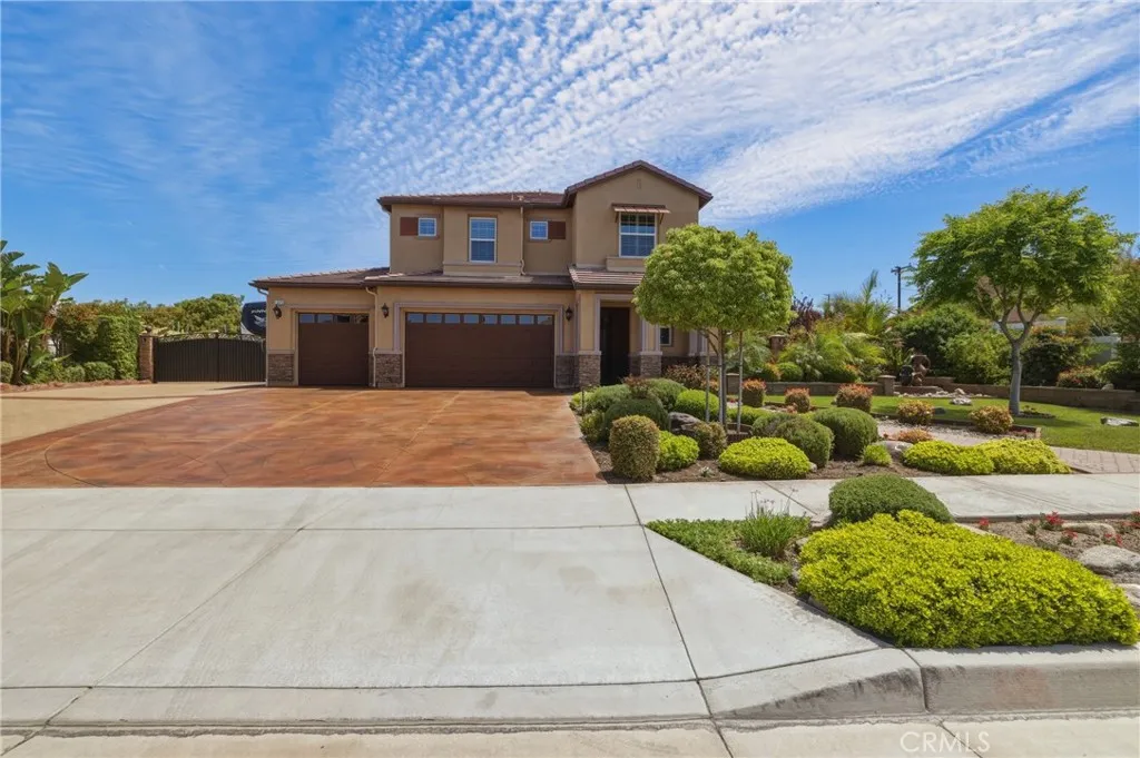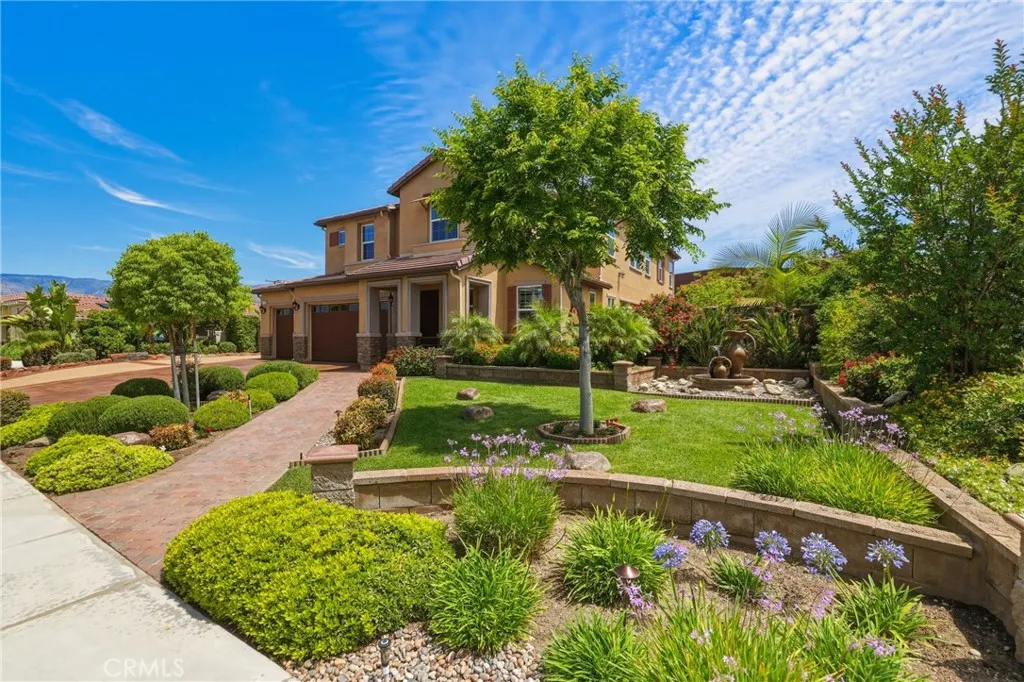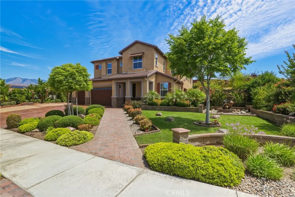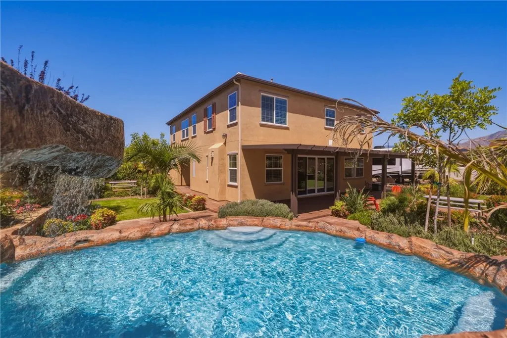 A true gem within the highly sought-after North Ranch community of Redlands, this fully upgraded Signature Series by Diversified Pacific Communities offers a seamless blend of modern luxury, thoughtful design, and everyday functionality, all with the rare benefit of no HOA. Built in 2019, this impressive two-story residence spans approximately 3,361 square feet and sits on a sprawling 14,025 square foot lot. Framed by breathtaking sunset views and the scenic backdrop of the San Bernardino Mountains, the setting delivers both beauty and a sense of peaceful privacy. Designed for versatility, the home features four spacious bedrooms, four bathrooms, and an upstairs loft ideal for additional living, entertainment, or relaxation space. The open-concept floor plan is elevated by crown moulding, wood shutters throughout, and an abundance of natural light, creating a refined yet comfortable atmosphere. The gourmet kitchen serves as a true centerpiece, showcasing quartz countertops, stainless steel appliances, lots of cabinetry, and a layout perfectly suited for both daily living and entertaining. Extensive upgrades are evident throughout the home, offering a move-in-ready experience with elevated finishes at every turn. Step outside to a resort-inspired backyard where a sparkling pool / water feature invites both relaxation and recreation. An oversized covered patio provides the perfect setting for outdoor dining and entertaining, while the expansive yard offers space to unwind, play, and enjoy the Southern California lifestyle. Additional highlights include a five-car garage, over