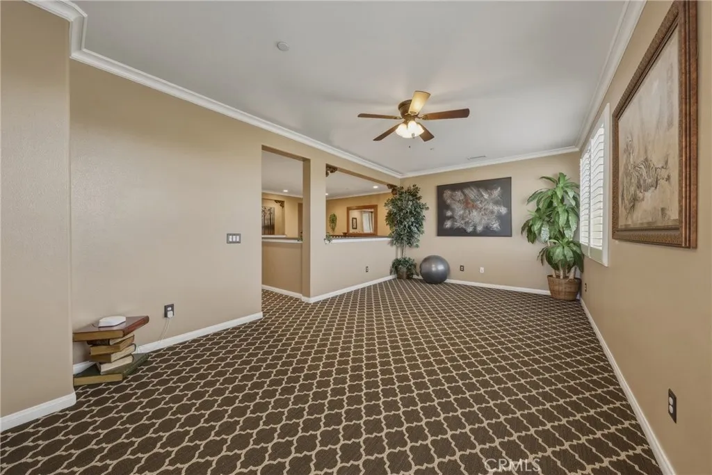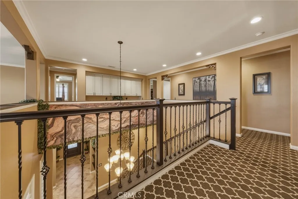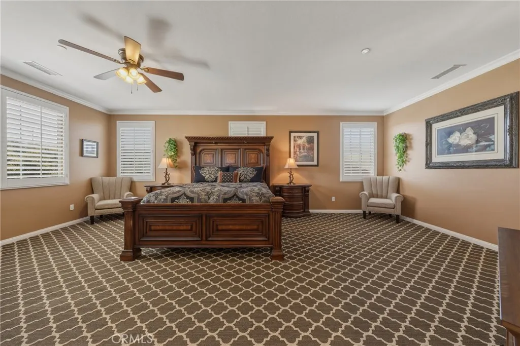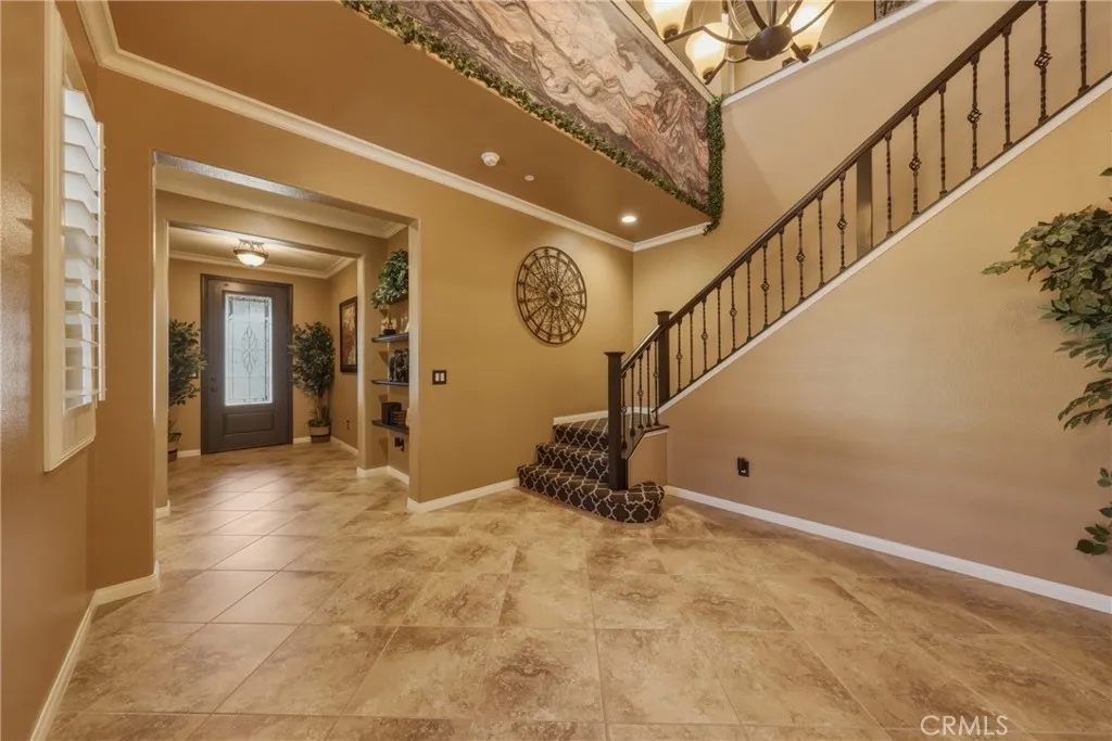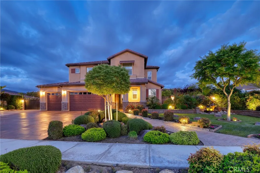 A true gem within the highly sought-after North Ranch community of Redlands, this fully upgraded Signature Series by Diversified Pacific Communities offers a seamless blend of modern luxury, thoughtful design, and everyday functionality, all with the rare benefit of no HOA. Built in 2019, this impressive two-story residence spans approximately 3,361 square feet and sits on a sprawling 14,025 square foot lot. Framed by breathtaking sunset views and the scenic backdrop of the San Bernardino Mountains, the setting delivers both beauty and a sense of peaceful privacy. Designed for versatility, the home features four spacious bedrooms, four bathrooms, and an upstairs loft ideal for additional living, entertainment, or relaxation space. The open-concept floor plan is elevated by crown moulding, wood shutters throughout, and an abundance of natural light, creating a refined yet comfortable atmosphere. The gourmet kitchen serves as a true centerpiece, showcasing quartz countertops, stainless steel appliances, lots of cabinetry, and a layout perfectly suited for both daily living and entertaining. Extensive upgrades are evident throughout the home, offering a move-in-ready experience with elevated finishes at every turn. Step outside to a resort-inspired backyard where a sparkling pool / water feature invites both relaxation and recreation. An oversized covered patio provides the perfect setting for outdoor dining and entertaining, while the expansive yard offers space to unwind, play, and enjoy the Southern California lifestyle. Additional highlights include a five-car garage, over
