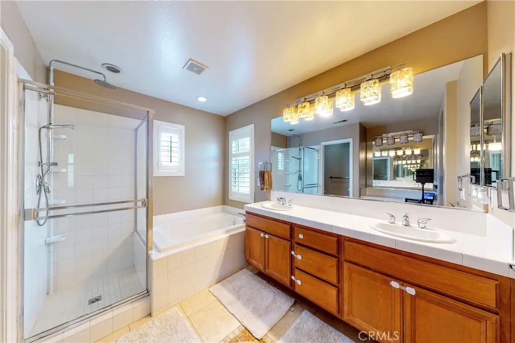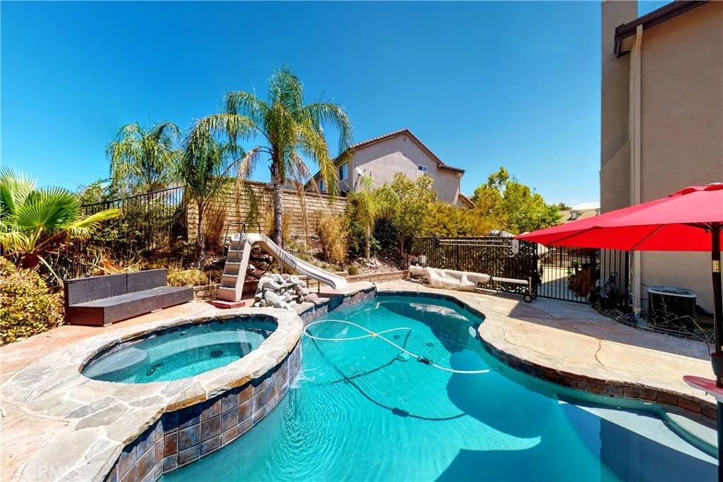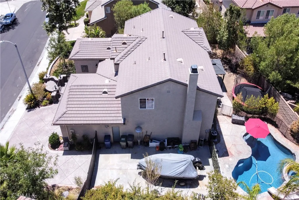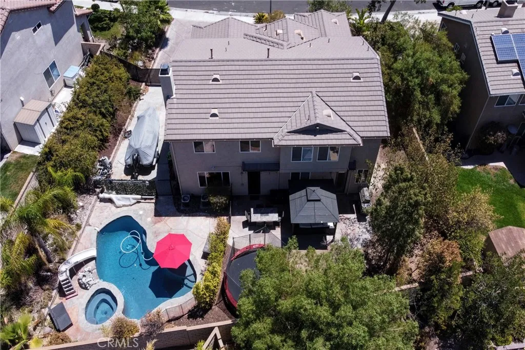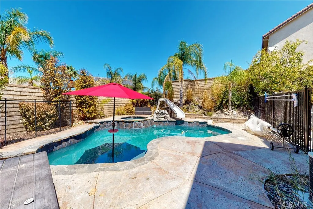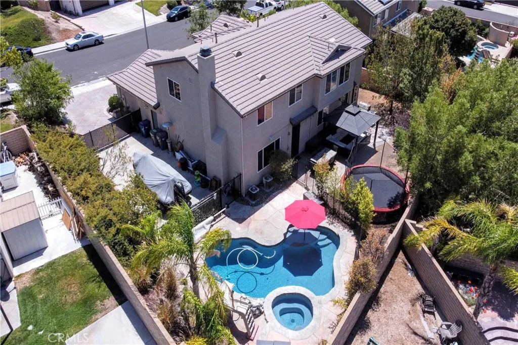 STUNNING UPPER STONECREST ENTERTAINERS DREAM WITH RESORT-STYLE BACKYARD + RV PARKING Welcome to a rare opportunity to own one of Upper Stonecrests most impressive homeswhere luxury, space, and lifestyle come together seamlessly. This highly upgraded residence offers 5 bedrooms, 4 bathrooms, a versatile loft/office, and a desirable full bedroom and bath on the main levelideal for guests or multi-generational living. Step outside into your own private resort. The spectacular backyard is designed for unforgettable entertaining, featuring a beautiful pool with Wi-Fi controlled heater, spa, waterfall, and slide. Enjoy evenings under the covered patio with fan, fire up the BBQ, and take in breathtaking views surrounded by lush landscaping and custom hardscape. Inside, the home welcomes you with a grand entry, highlighted by a striking wood plank ceiling and elegant formal living and dining spaces. The designer kitchen is both stylish and functional, showcasing granite countertops, a large center island with breakfast bar, double ovens, 5-burner cooktop, built-in microwave, and a walk-in pantryperfect for everyday living and entertaining alike. The spacious family room offers a built-in entertainment center, wired for 7.1 surround sound, and a cozy gas fireplace, creating the perfect gathering space. Upstairs, the luxurious primary suite is a true retreat, featuring double door entry, soaring ceilings, and sweeping mountain views. The spa-inspired bath includes a soaking tub, oversized shower, and an expansive walk-in closet with custom organizers. Additional highlights include ti